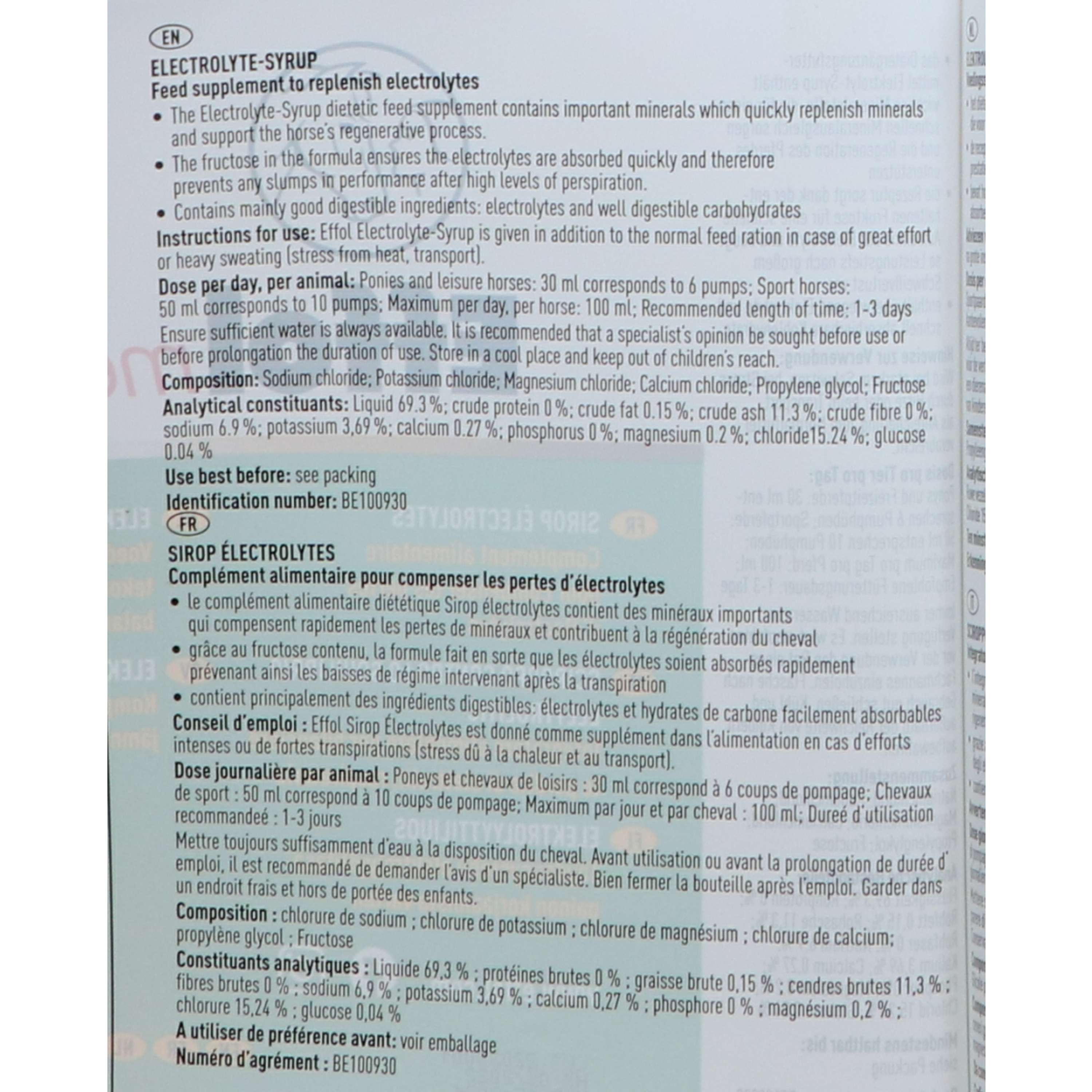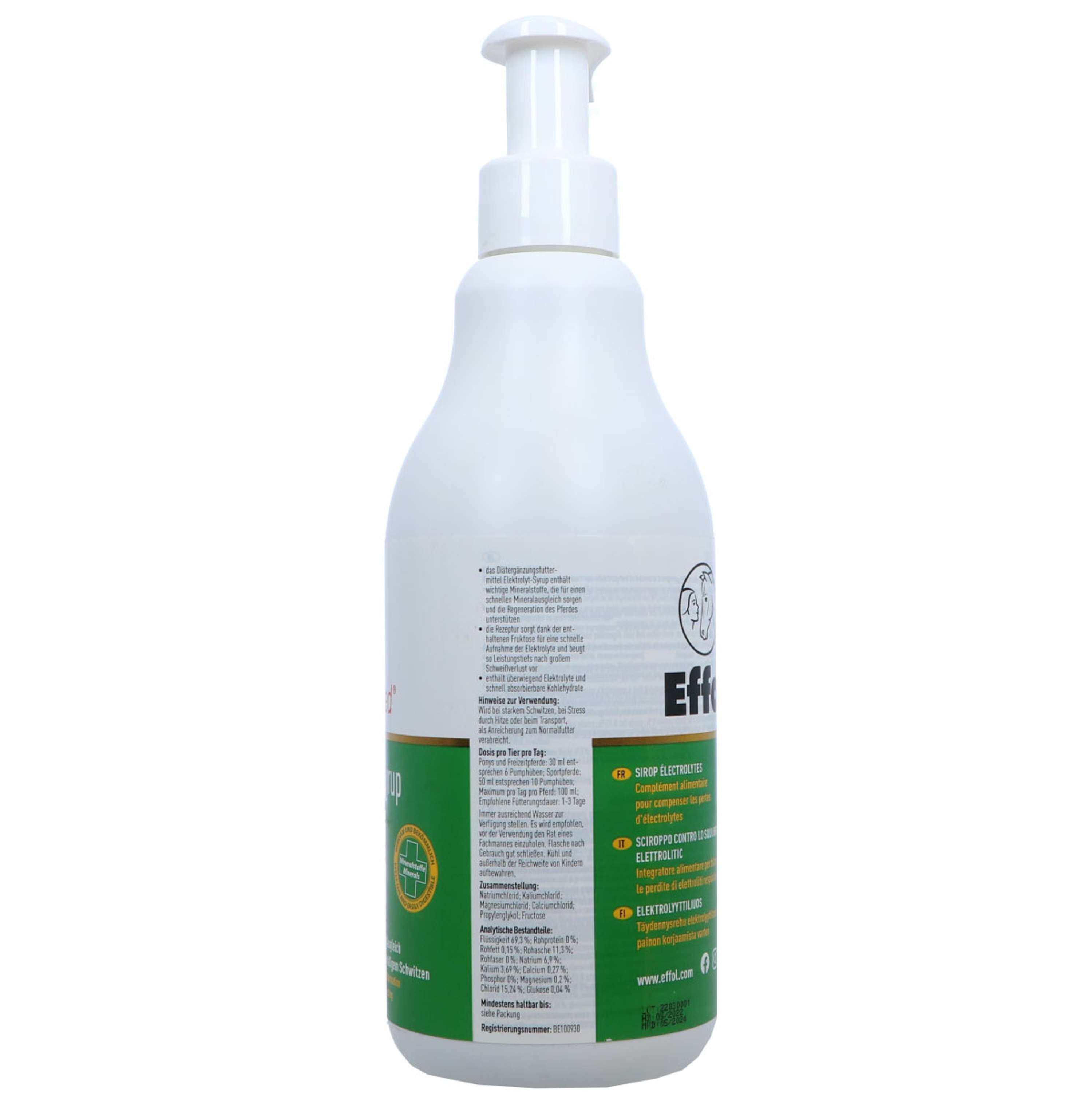 The Effol med Electrolyte-Syrup encorporates important minerals such as Potassium, Chloride, Magnesium and Sodium for a rapid recovery and appropriate mineral balance. Fructose aids in the quick absorption of the electrolytes and thus prevents further debilitation due to stress. Effol med Electrolyte-Syrup you can mix with the drinking water or with the feed.