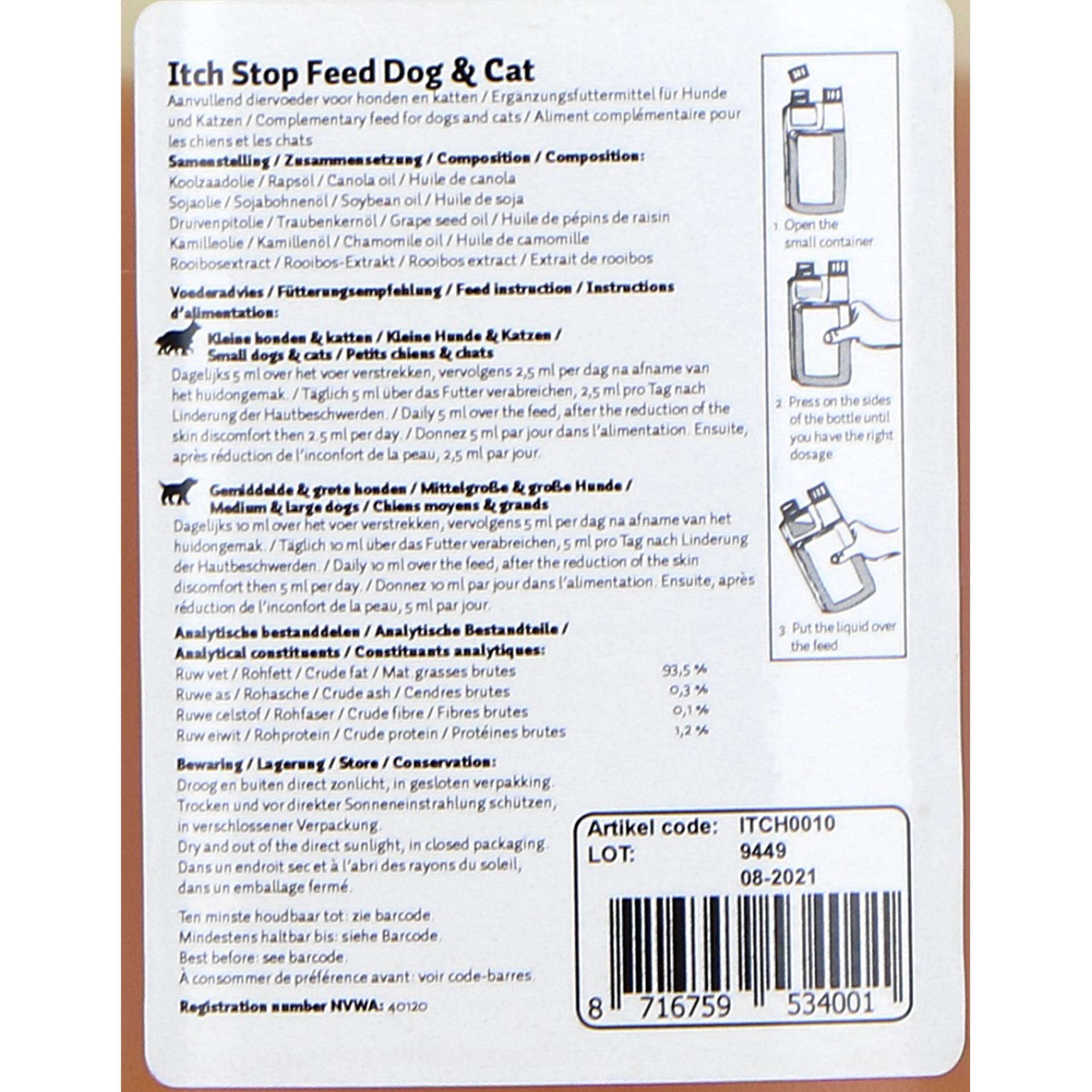 Excellent Pets Itch Stop Feed is a supplementary liquid pet food for dogs and cats. It supports and softens the skin and helps maintain a shiny coat.