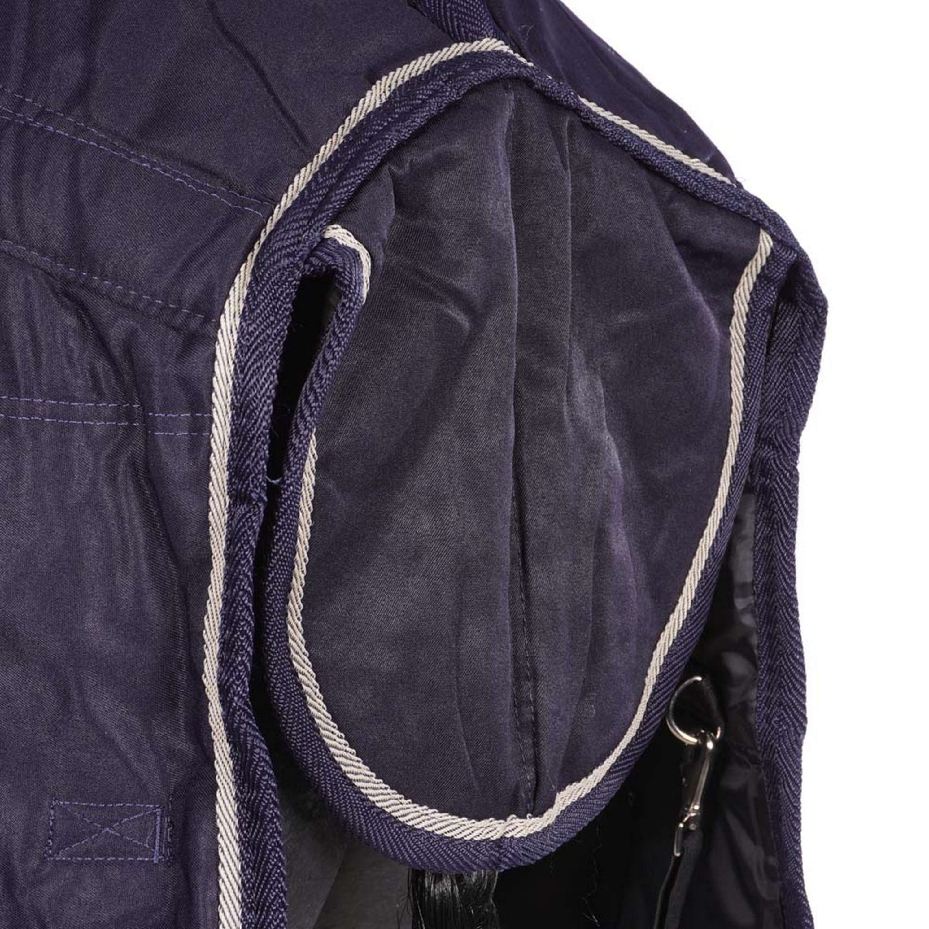 Stable rug Highliner with higher neck for a perfect fit. 300D Polyester, 200g polyfill filling, polyester lining, 2 front fastenings, tail flap, cross surcingles with elastic and detachable elastic leg straps.