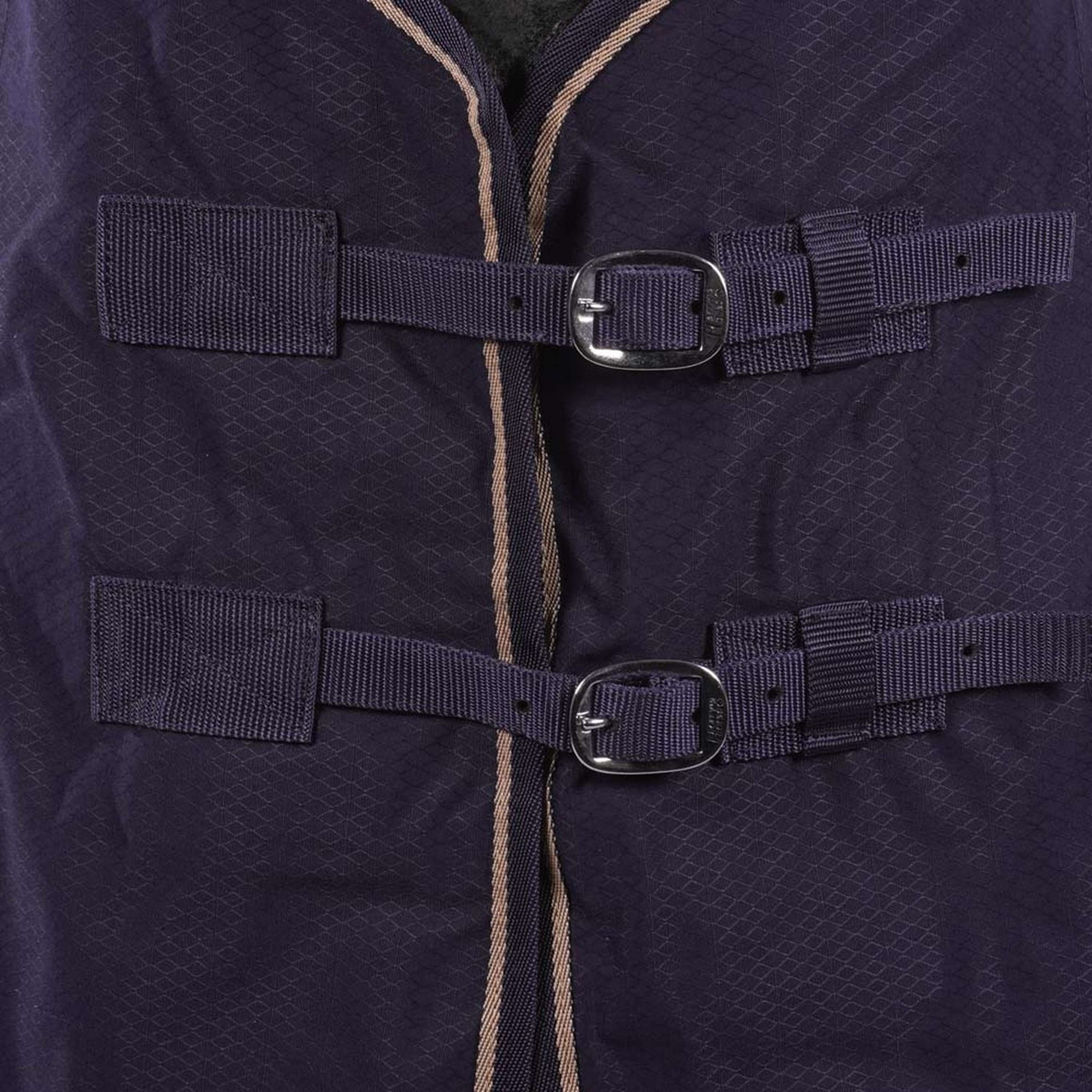 Strong summer rug made of heavy polyester/cotton. Double front fastenings, shoulder gussets, elasticated cross surcingles and leg straps.