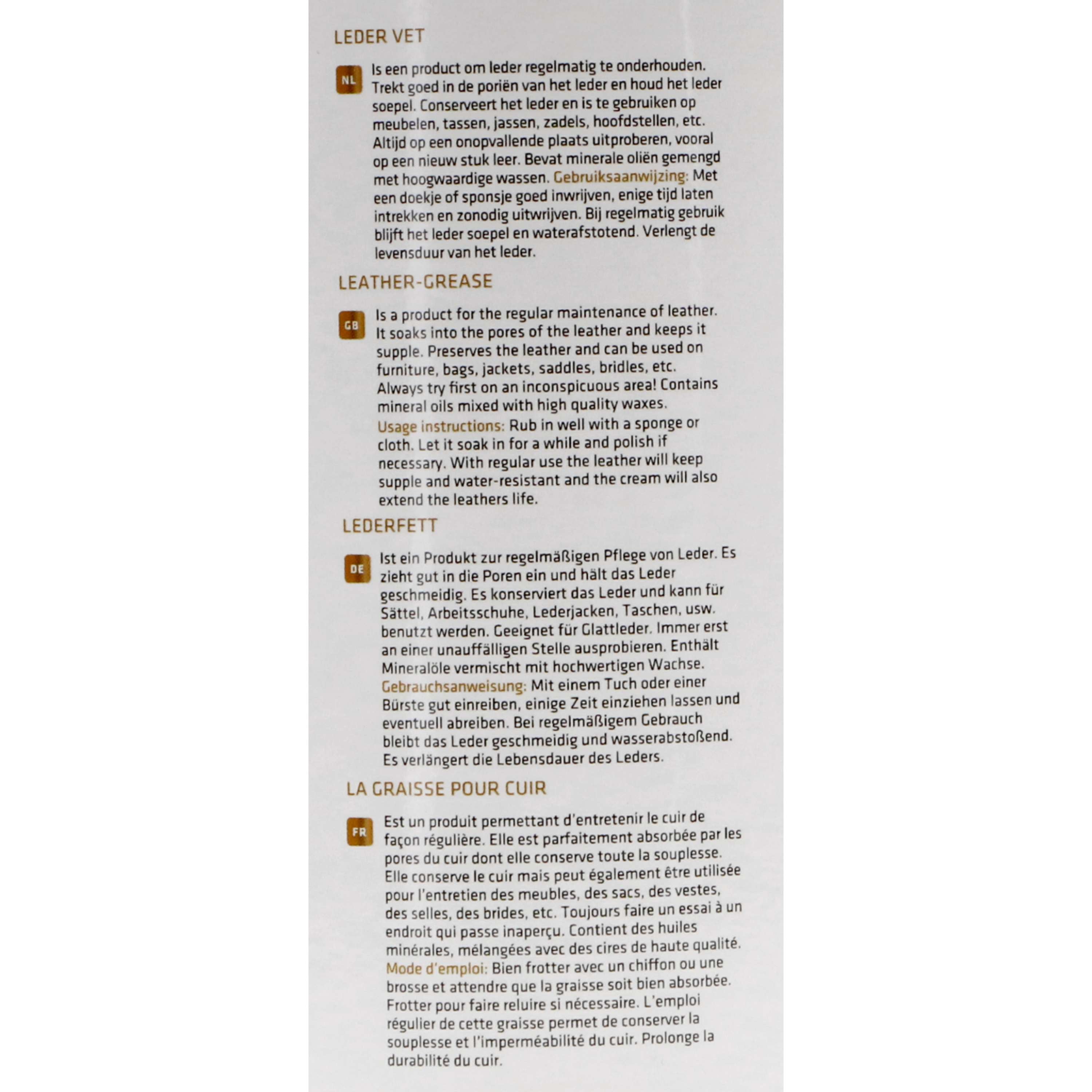 This fantastic grease seeps into the pores, keeping your leather soft and flexible. No more stiff and lifeless leather!