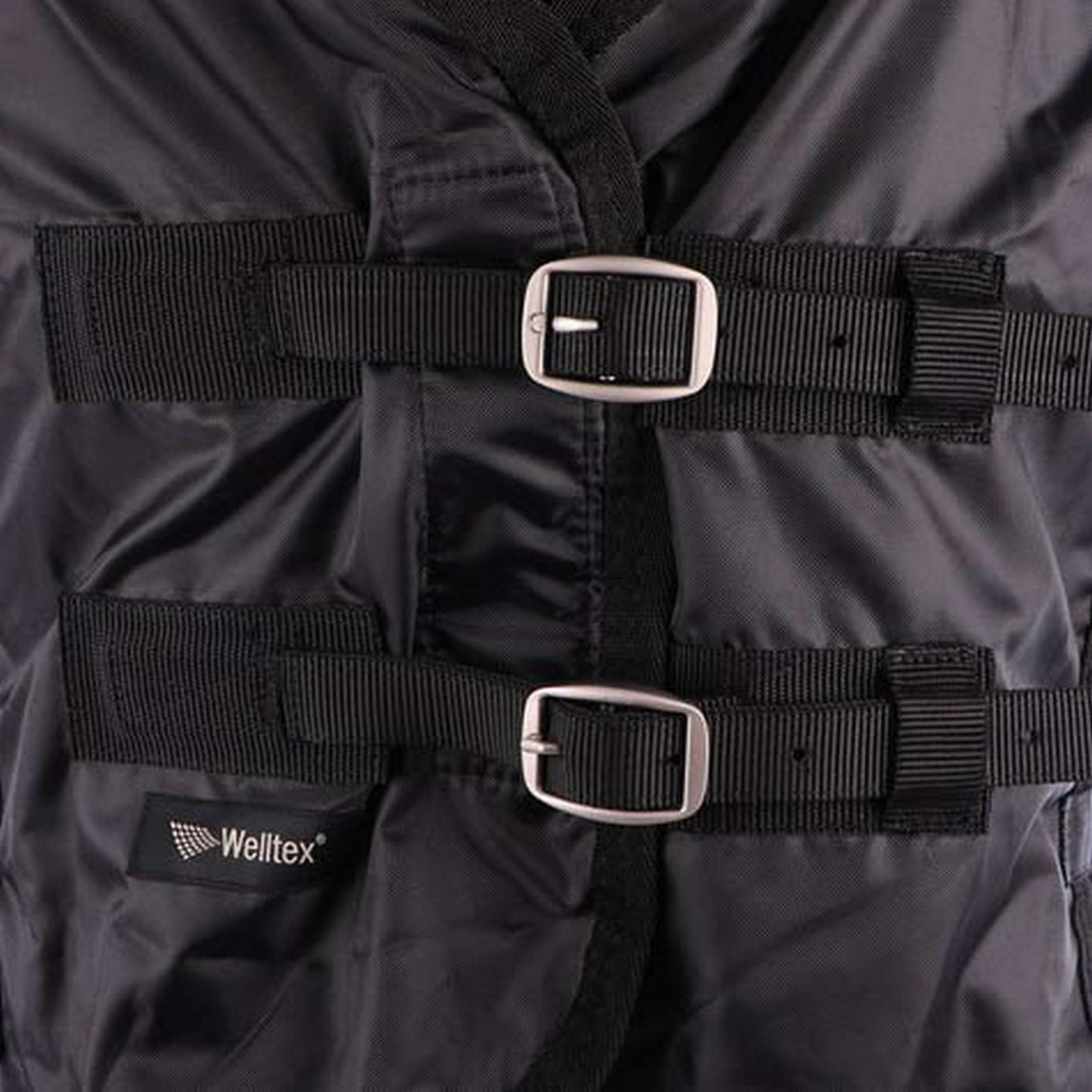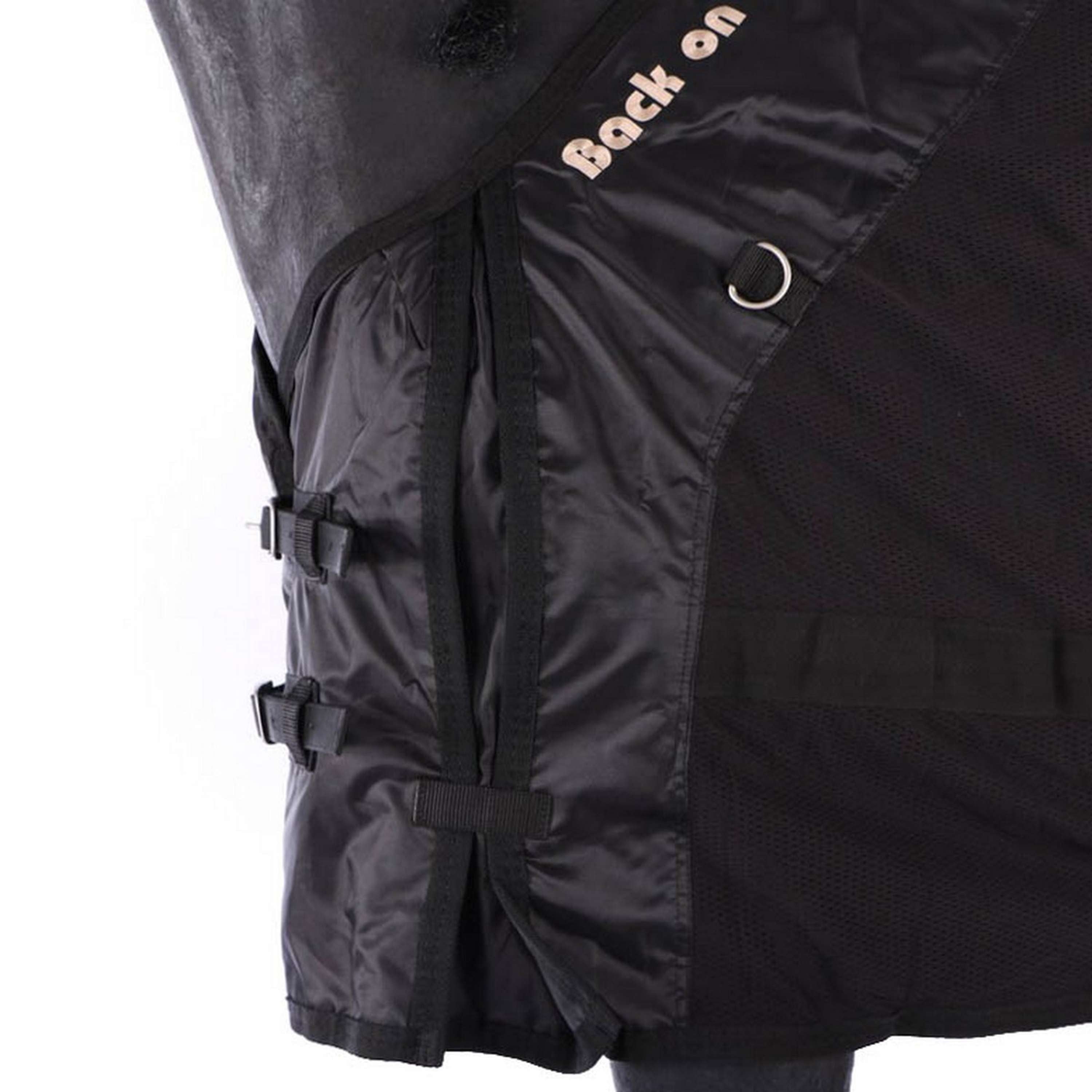 This super breathable lightweight blanket is ideal for the stable, as a summer blanket, sweat blanket, and under blanket, during transport, and before and after training. The blanket has a very good fit. It also features a fleece wither protector, double chest closure, leg splits, cross surcingles, tail flap and cord, and attachment loops for a separate neck piece and for leg straps. Horses do not perspire excessively under a Back on Track blanket.