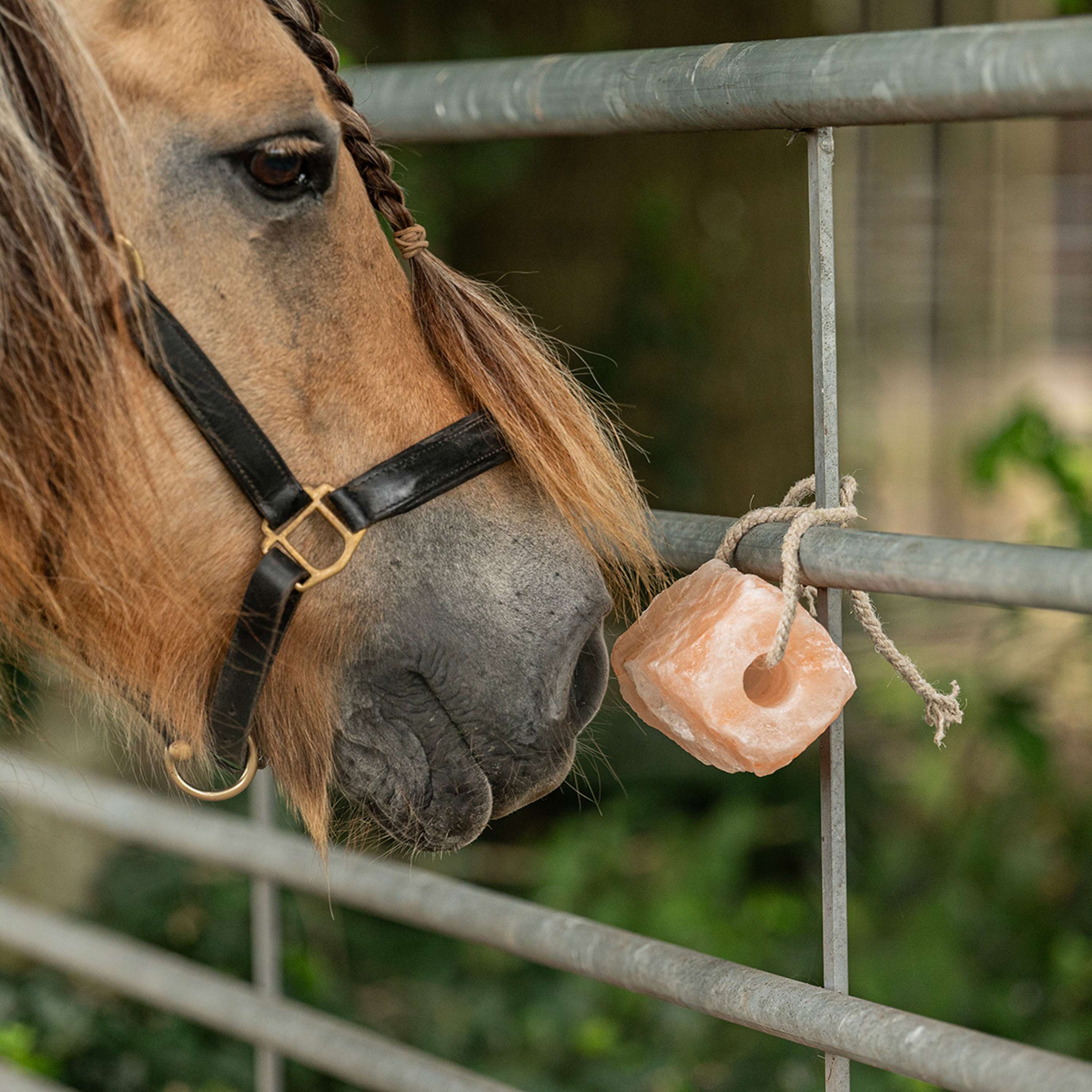 Thanks to the included rope, you can easily hang the salt lick wherever you like. Ideal for horses that need extra minerals.
