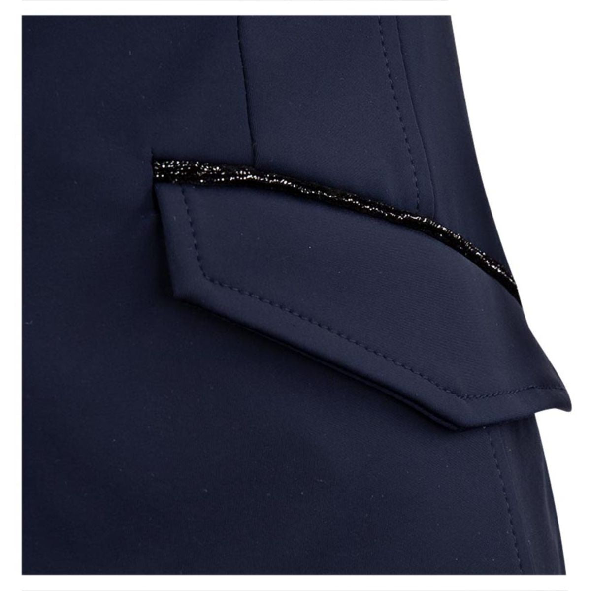 - Glittering velvet bands on various parts of the jacket