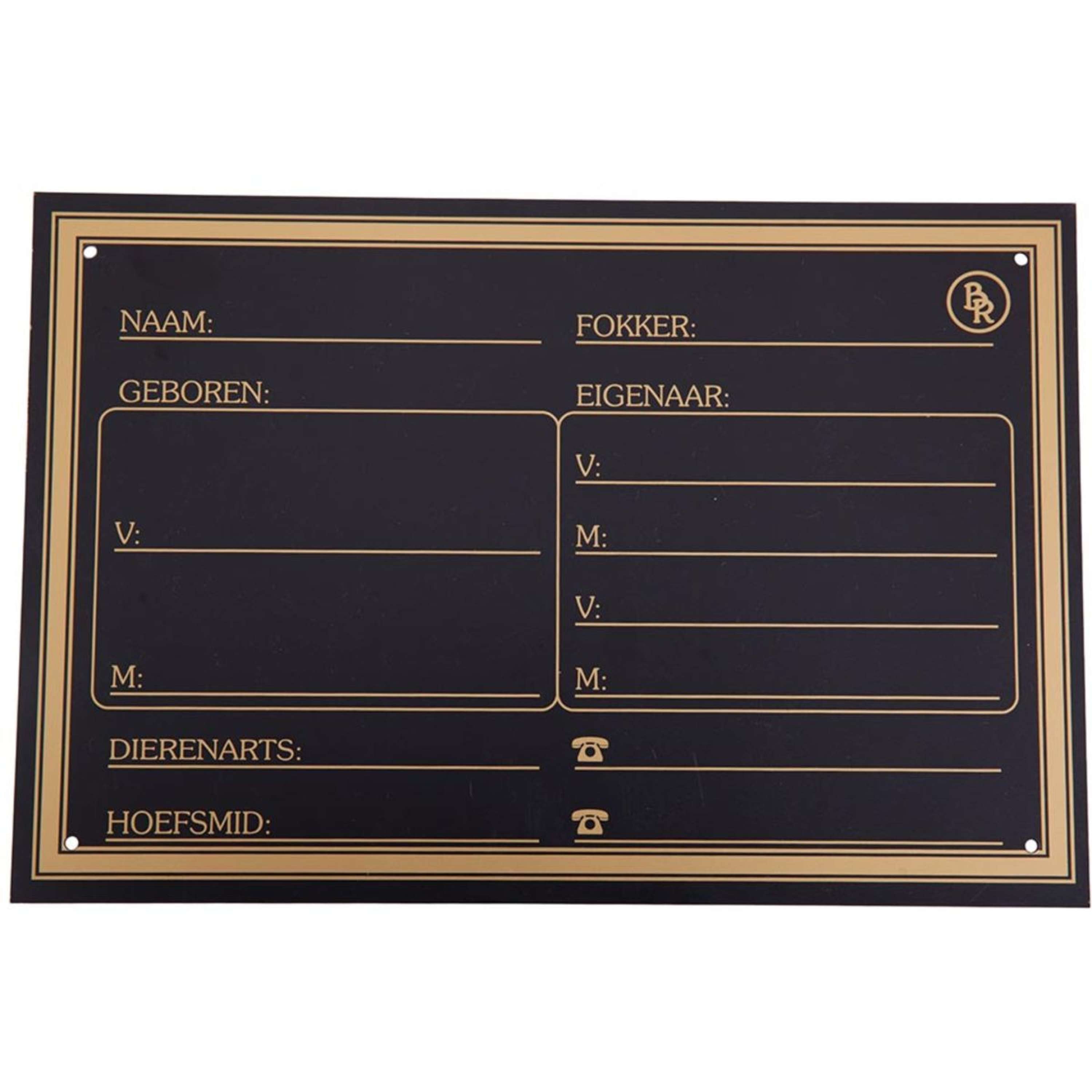 Fancy a stylish and durable stable board? The BR Stable Board Synthetic with Gold Print is just for you! Measuring 20 x 30 cm and made from black plastic with a gold-coloured print, this board is perfect for your stable.