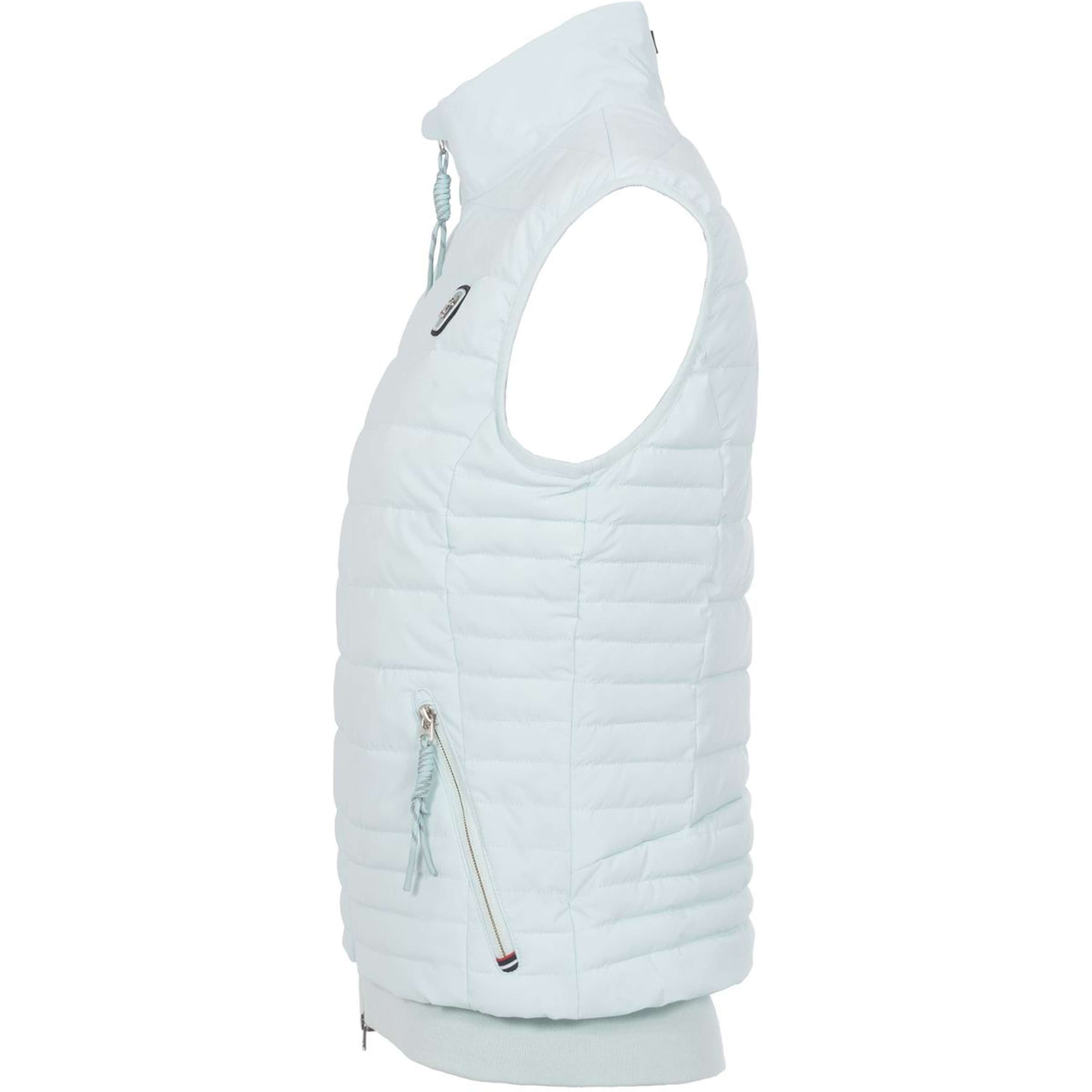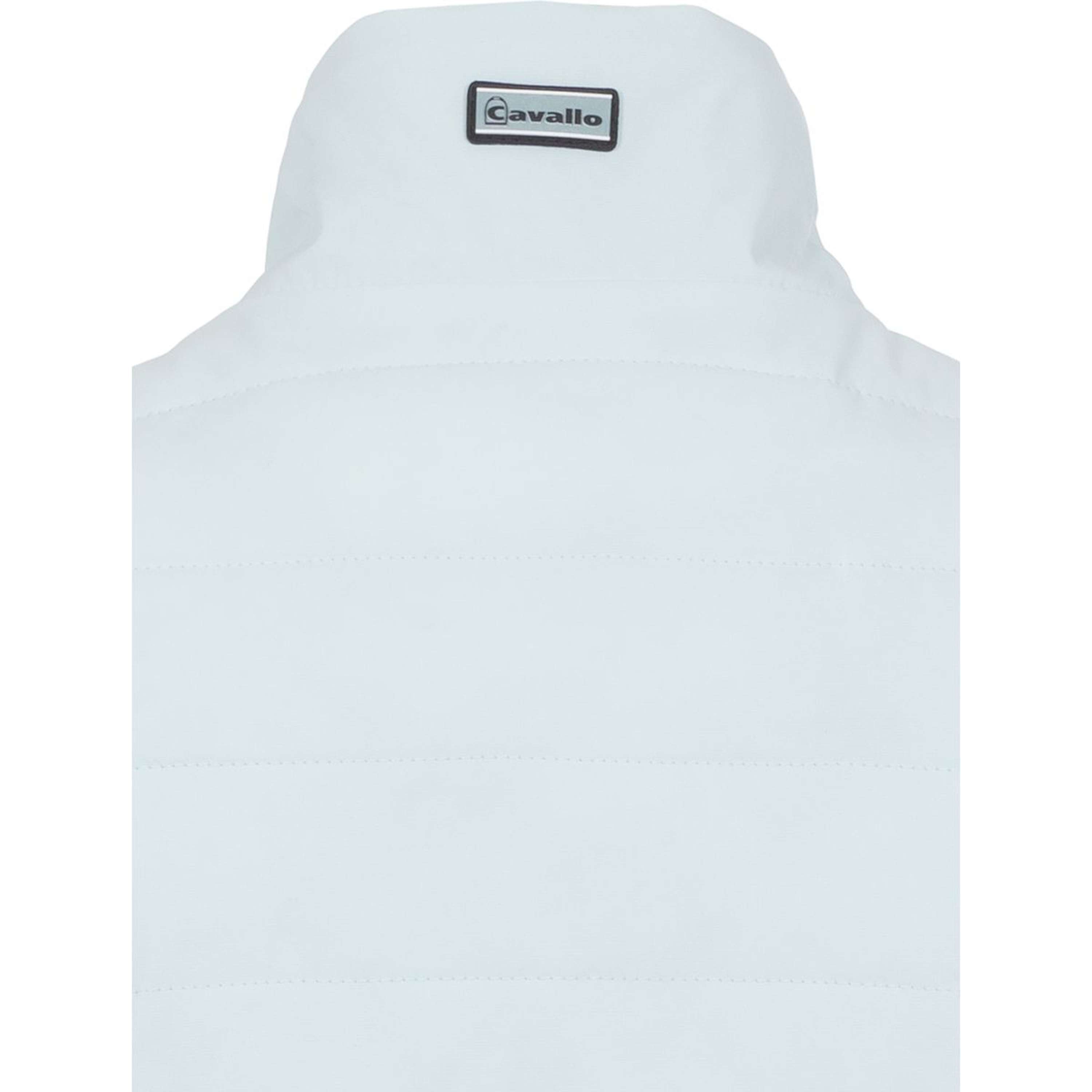 Short, lightweight quilted waistcoat with stand-up collar and fake down filling. Ribbed inside collar for a cosy feel. 2-way front zip. Two front pockets with zips. Elasticated binding at the armhole. Cavallo label on the left chest and on the centre back of the collar. Elasticated ribbed cuffs at the hem for extra comfort. Practical mobile phone pocket on the inside.