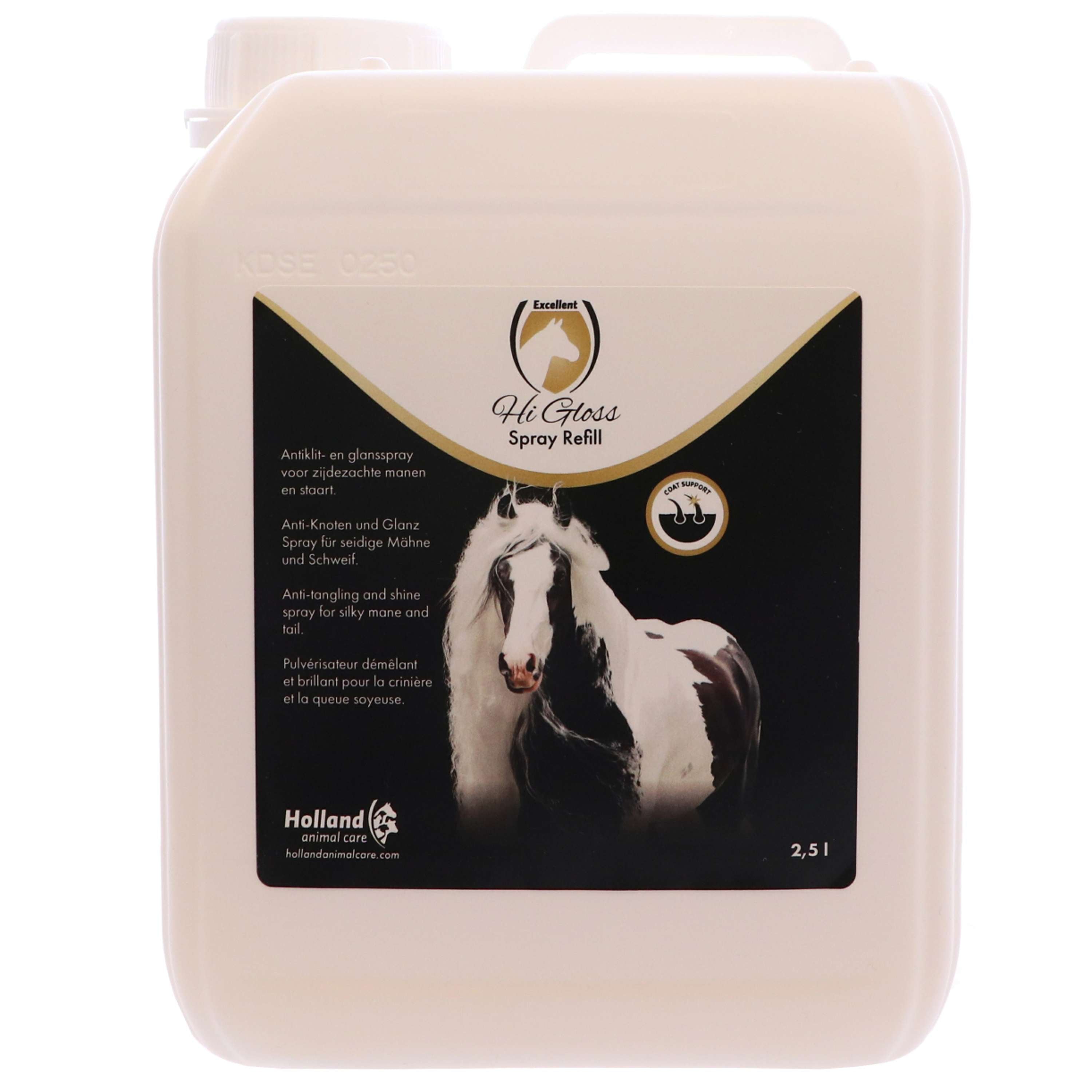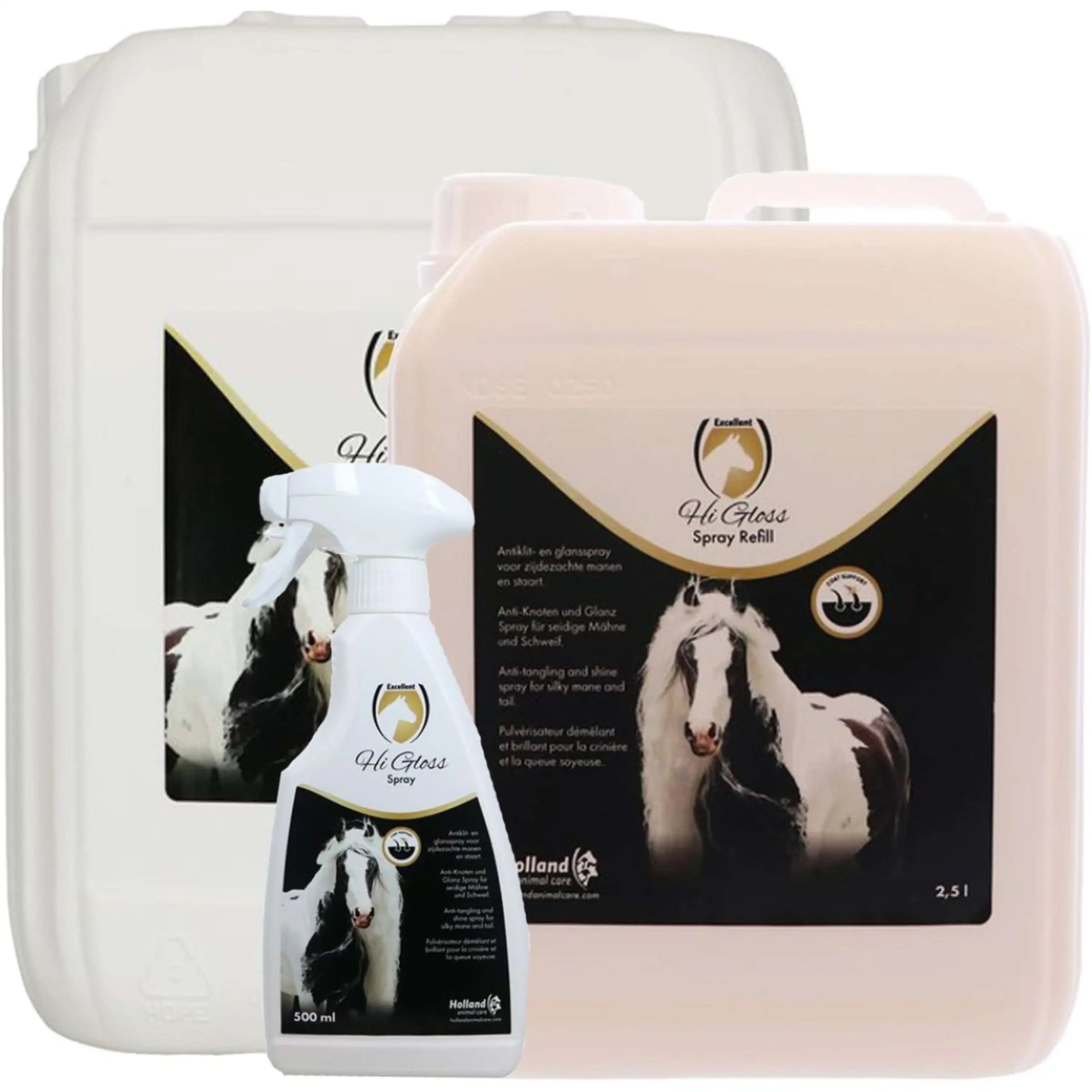 Spruce up your horse's coat with the Excellent Hi Gloss Spray! A top pick for horse owners all over the continent, this spray delivers a dazzling shine that'll make your horse look absolutely stunning. It's like giving your horse a trip to the spa, but without the fuss.
