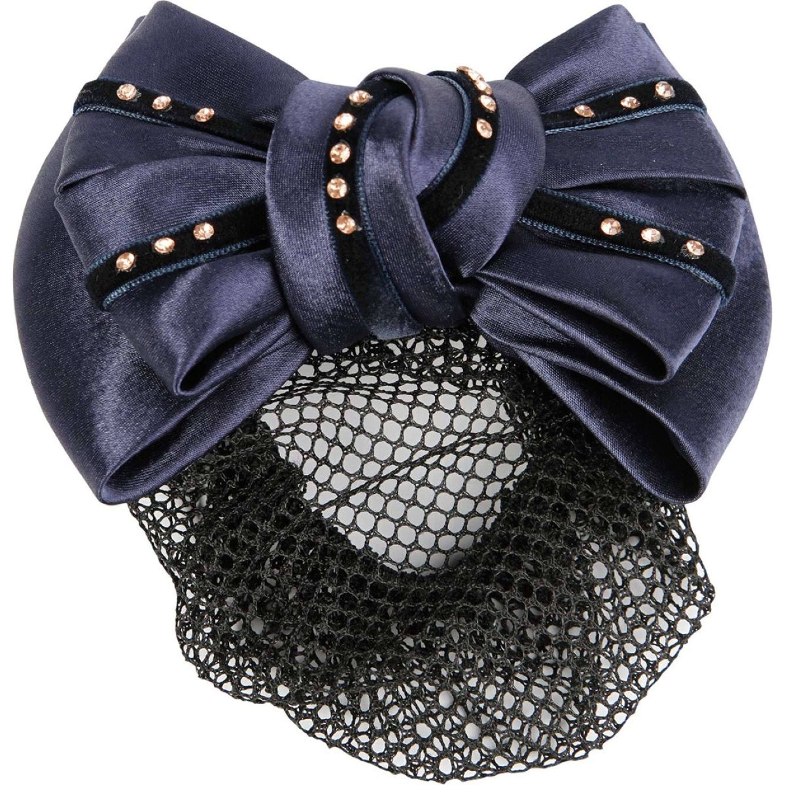 Luxurious hair bow with hairnet. Decorated with velvet stripes with rosegold rhinestones on top.