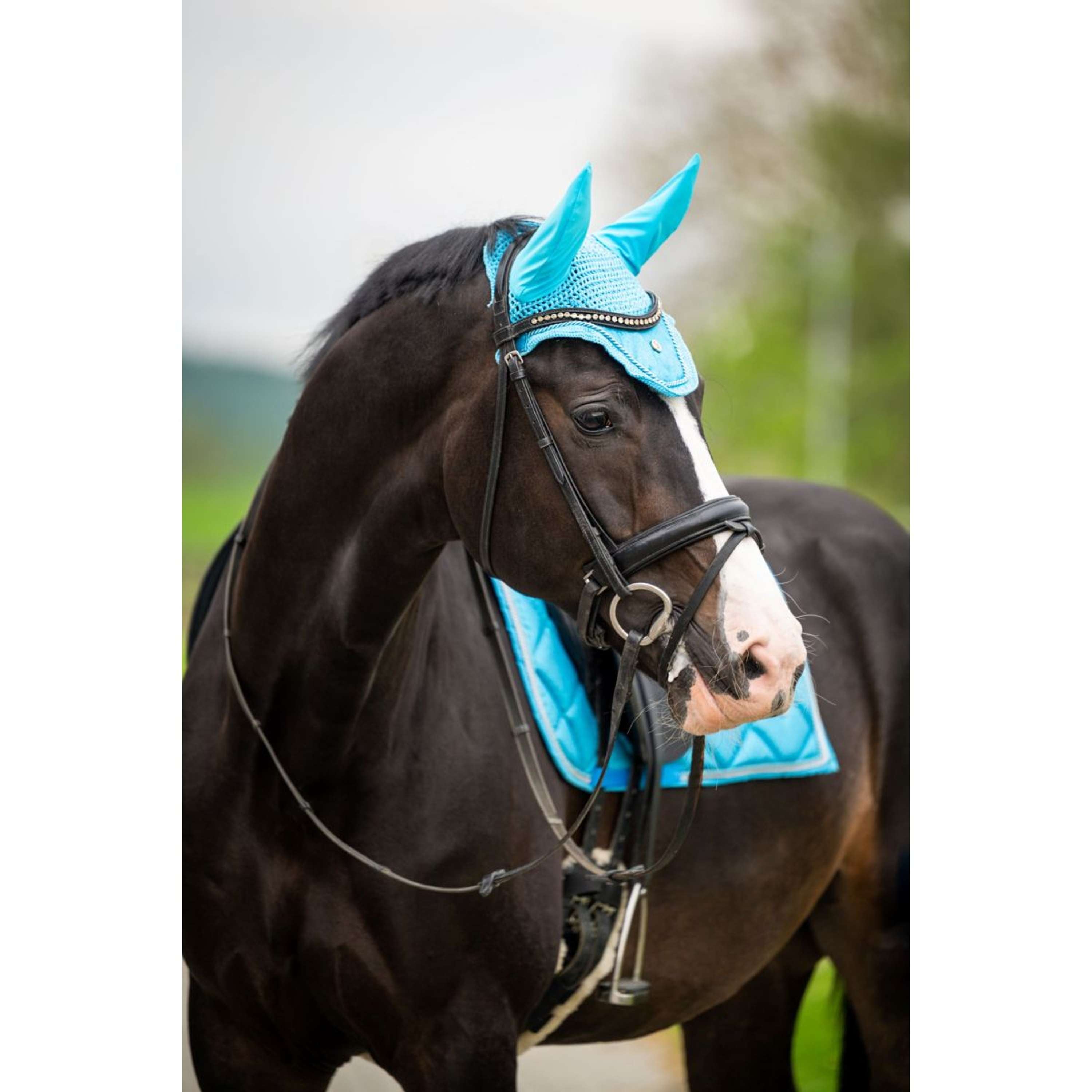 Apart from its good looks, the bonnet is designed to fit snugly under the bridle, ensuring it stays put. Your horse won’t be bothered by insects, and you can focus on your ride.