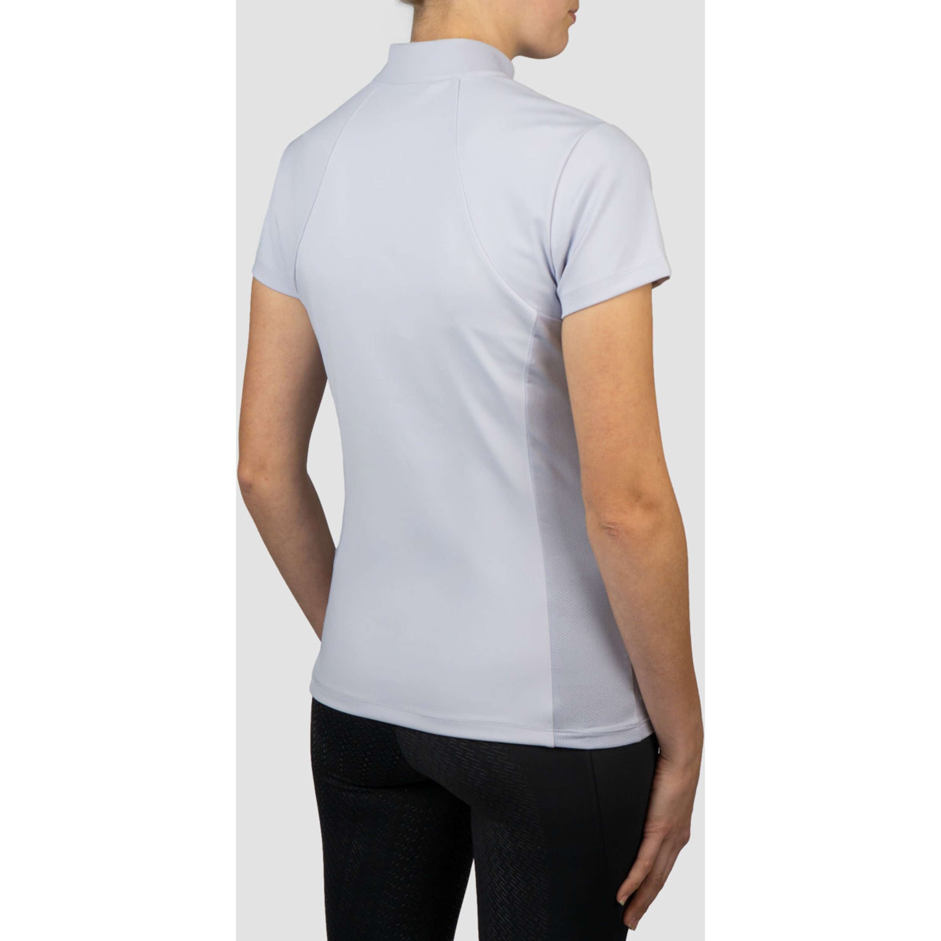 Short-sleeved training shirt made of high-quality comfortable stretch fabric. The breathable and quick-drying material treated with Polygiene OdorCrunch ensures optimal wearing comfort and freshness throughout the day. Designed with a half-zip front and a subtle stand-up collar, finished with white pearl glitter detailing for a sophisticated look.