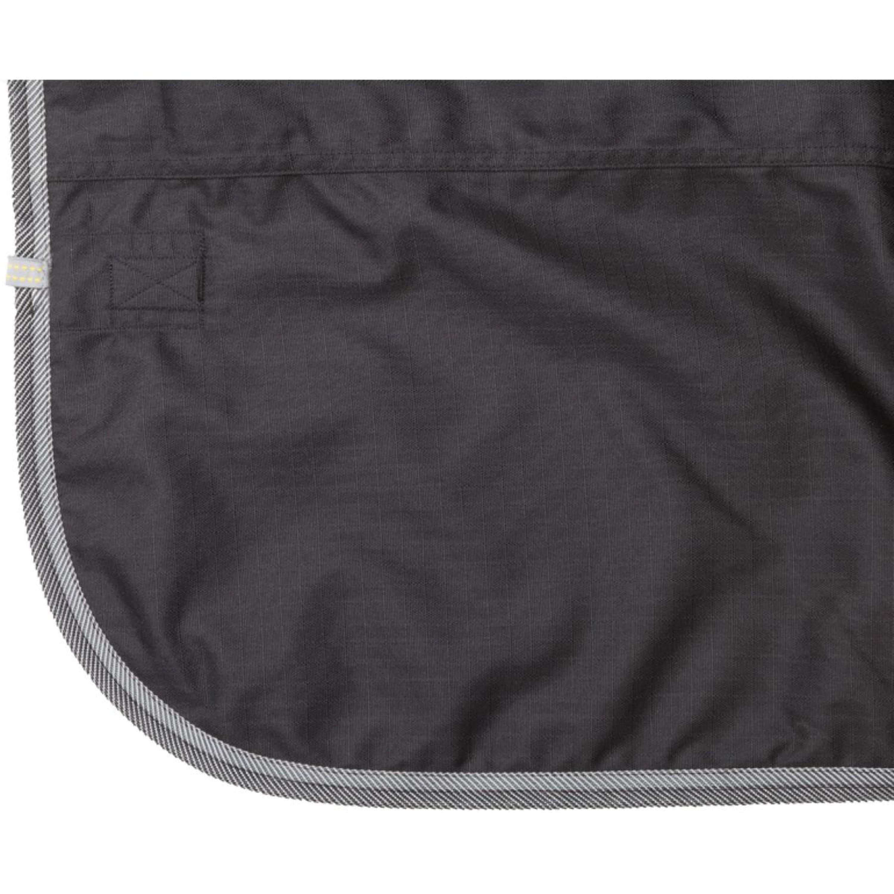 Featuring a double swivel hook chest fastener with Velcro, the rug stays snugly in place. The elastic inserts in the cross surcingles add to the comfort, while the deep tail strap and tail flap provide extra coverage and security.