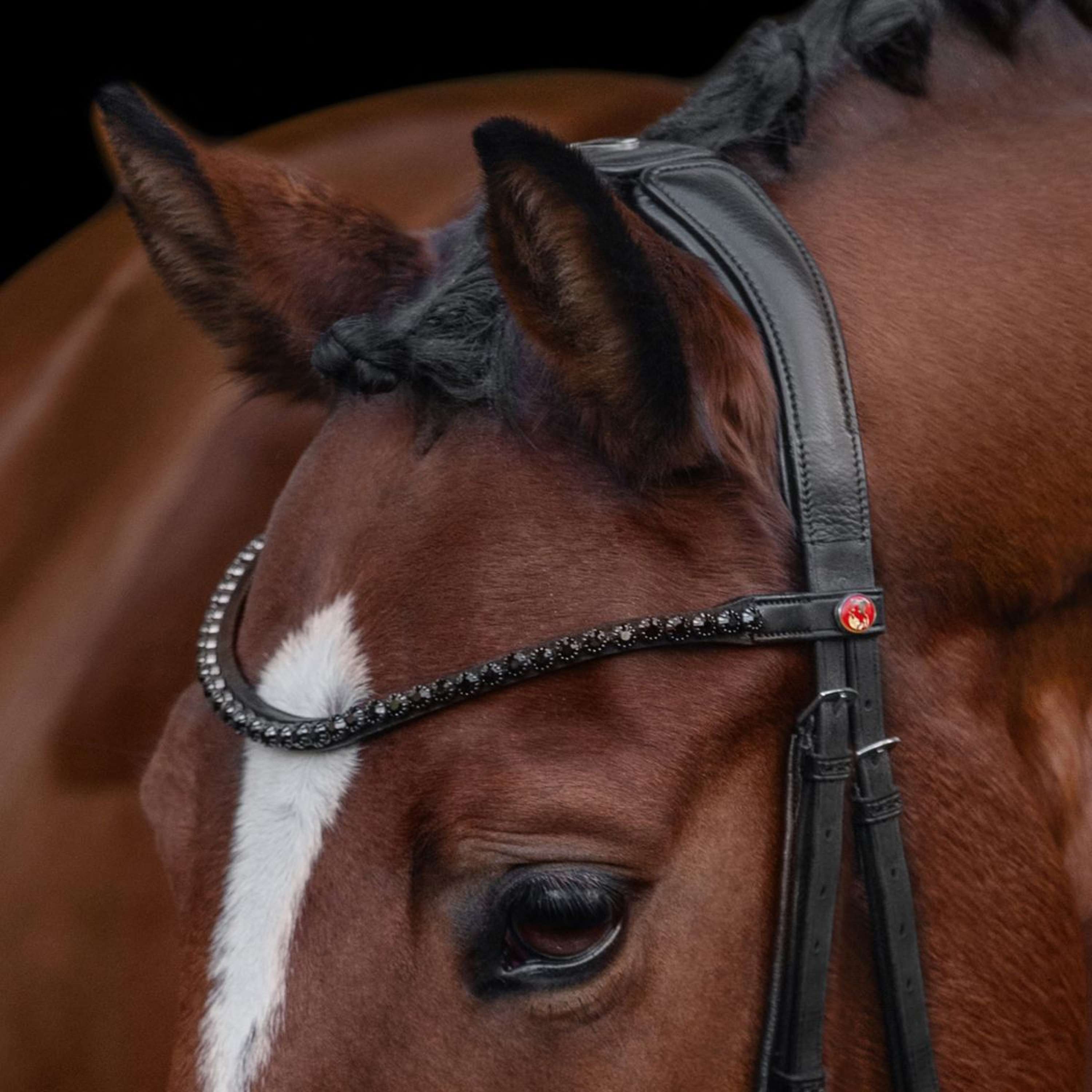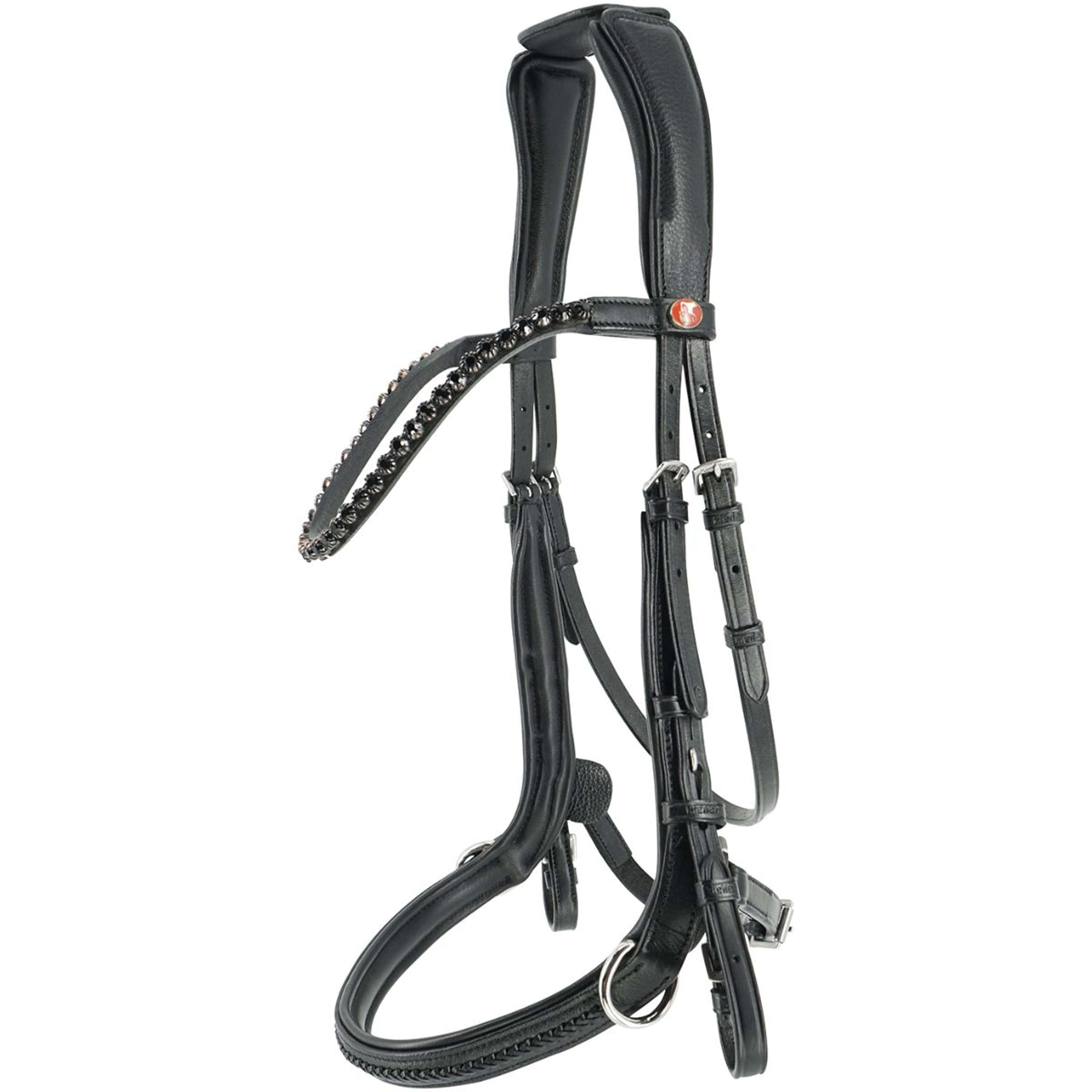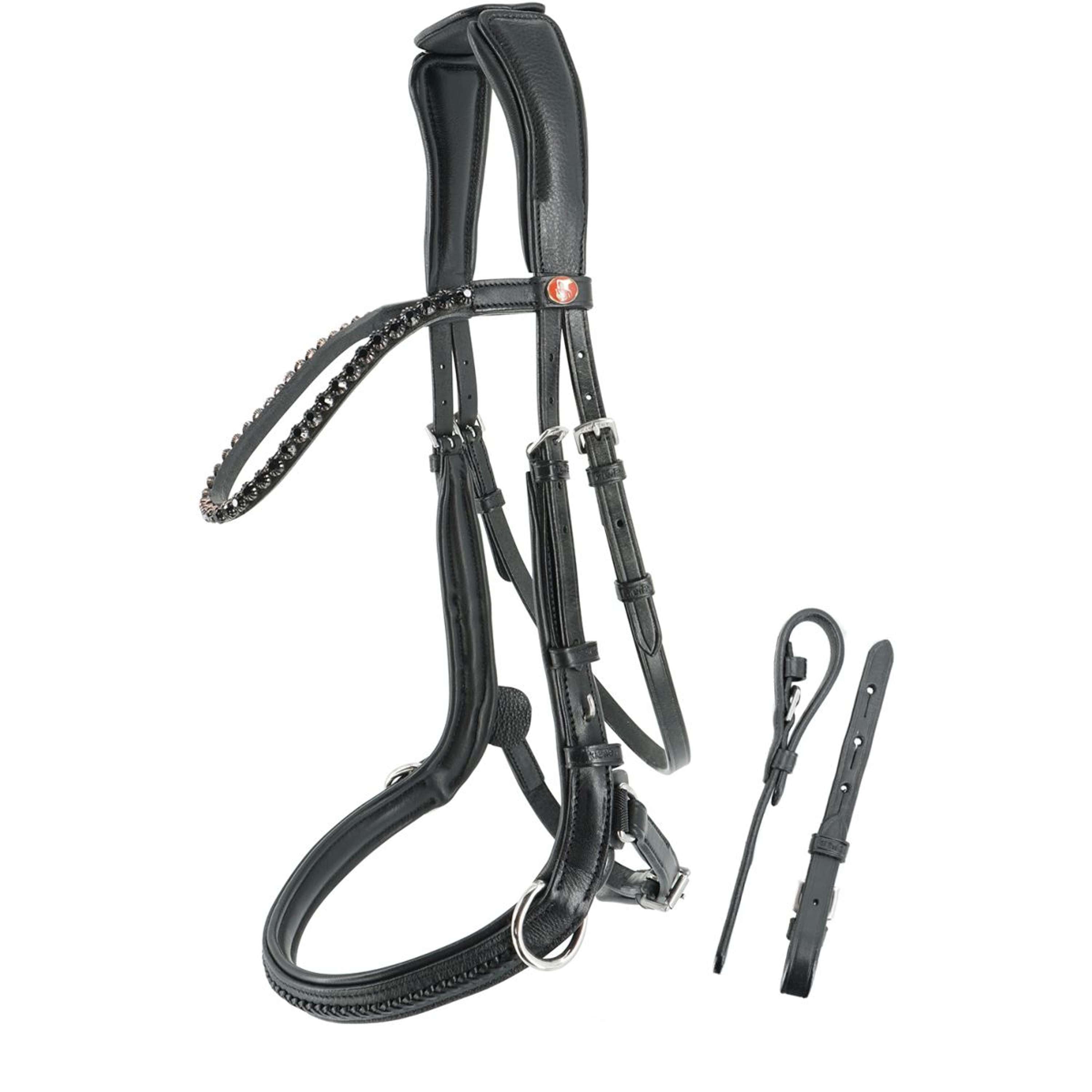 - Curved browband (not lined) with large crystals in black