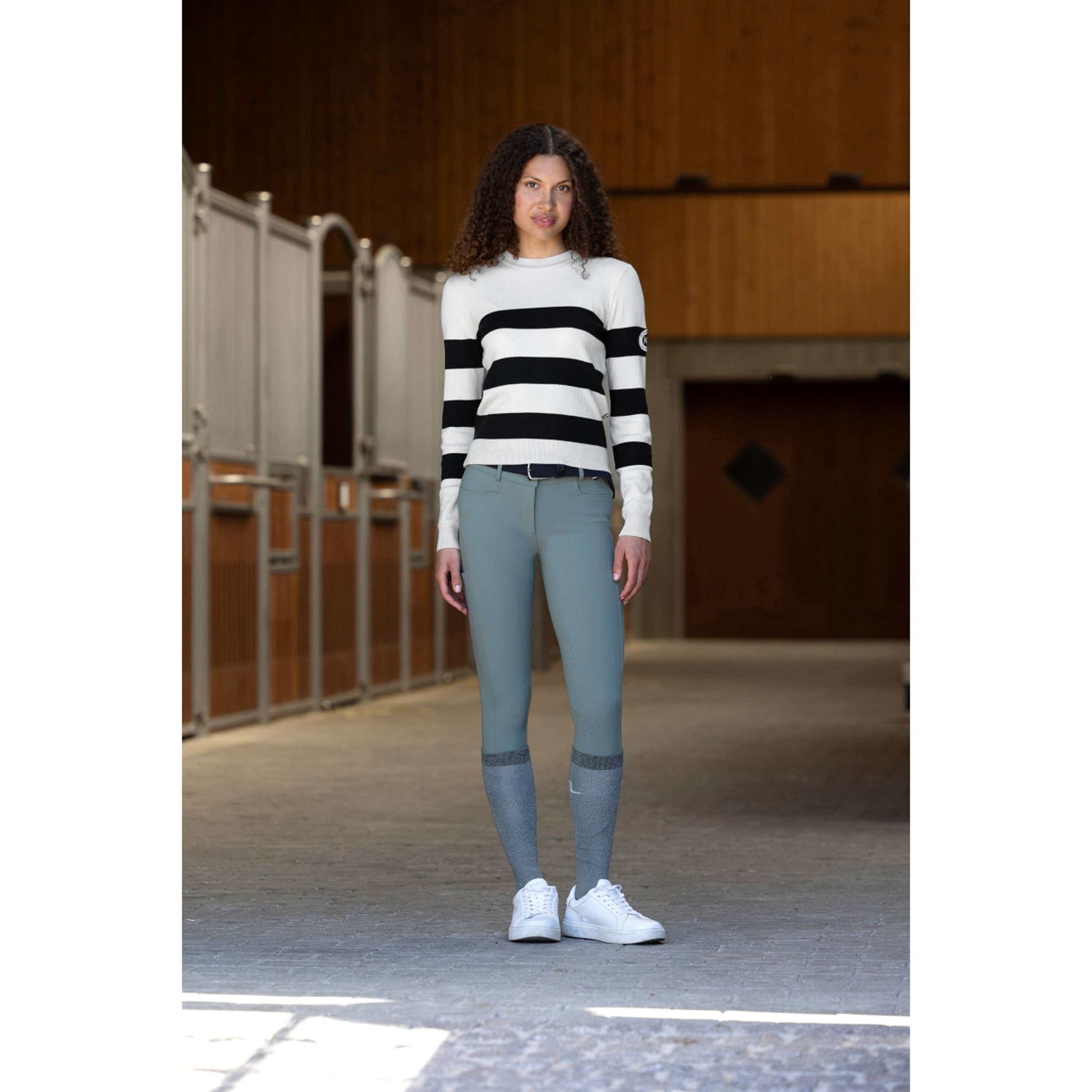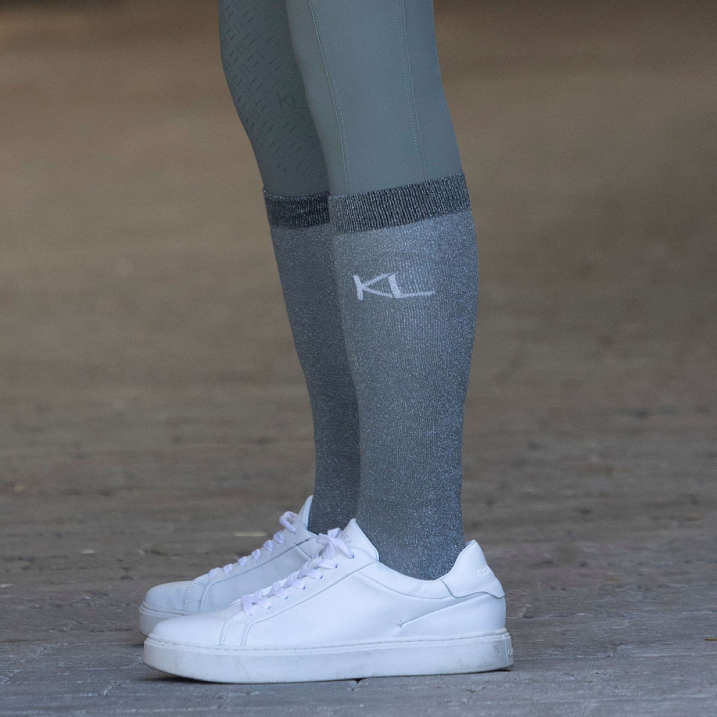 These knee-high socks offer the perfect fit under riding boots, ensuring a secure feel while reducing friction. The moisture-wicking Coolmax fabric and Polygiene StayFresh™ treatment work together to combat sweat and odors, making them a reliable choice for active riders. With a delicate glitter finish, they combine practicality and style for a polished look in and out of the arena.