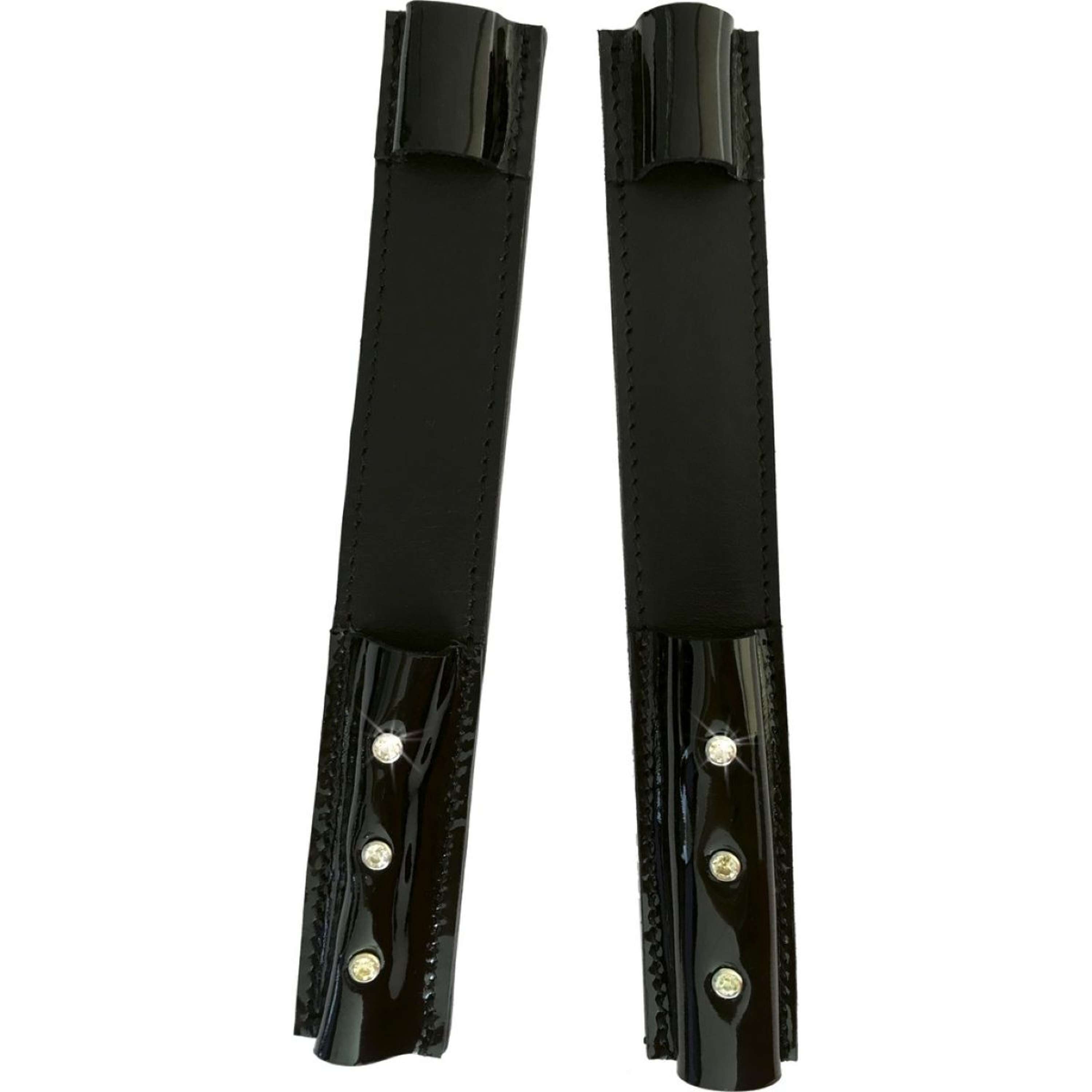 Our Norton Spur Guards aren't just about looking good—they're made from sturdy cow leather and designed to last. Patent leather brings a sleek look, and those rhinestones? They shine brightly on the outer sides, giving your riding boots some extra flair.