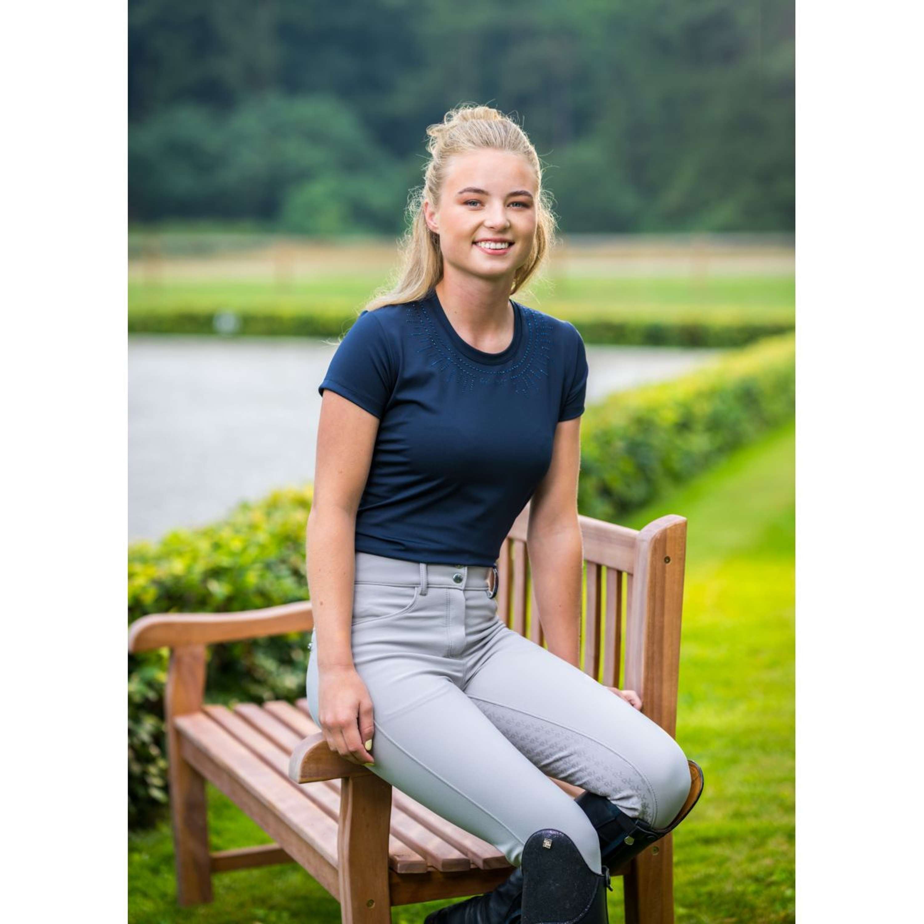 Meryl T-shirt made from breathable, stretchy fabric for ultimate comfort and freedom of movement. Stylishly finished with tonal shiny stones around the collar for a subtle sparkle. An elegant, sporty basic that pairs effortlessly - ideal for both training and leisure.