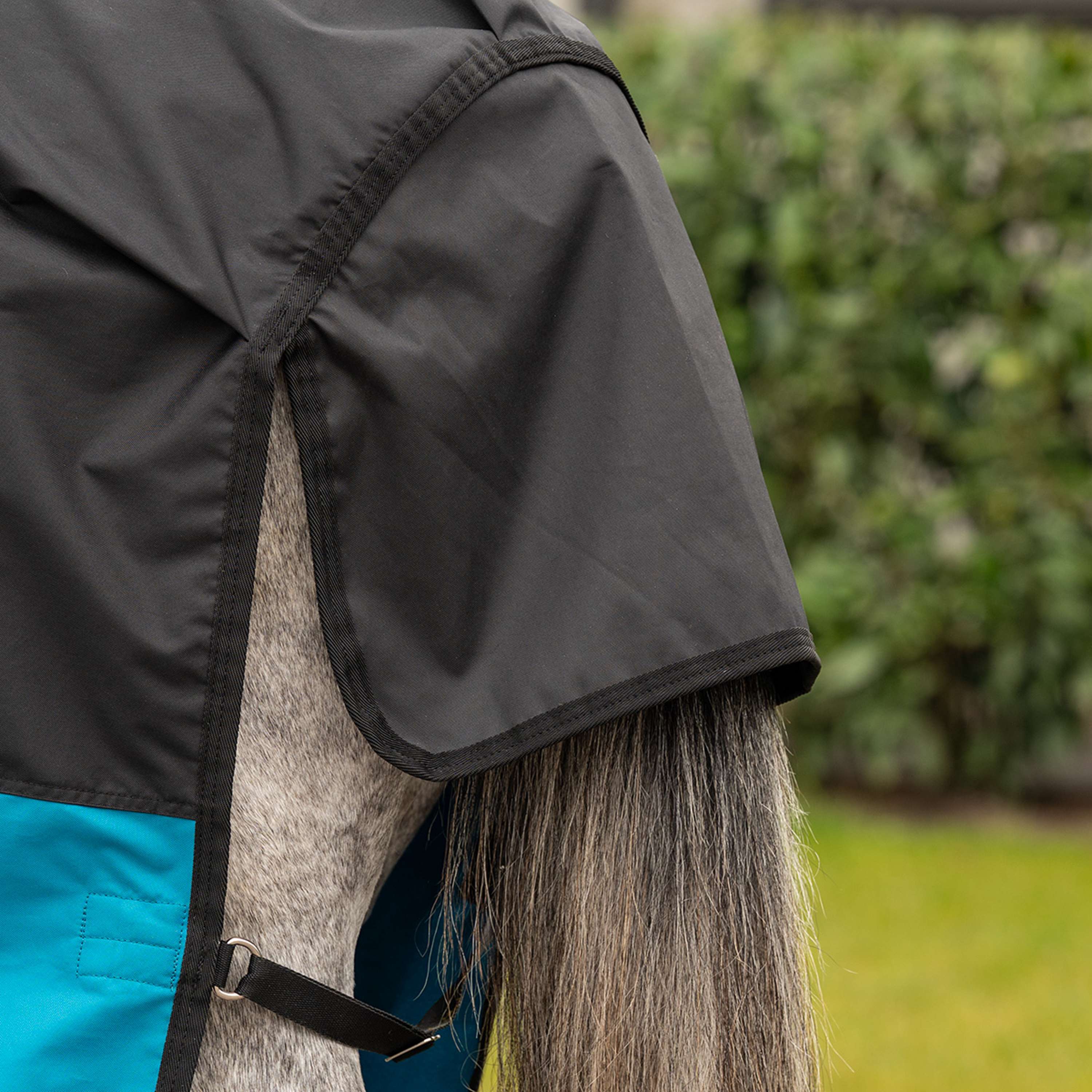What sets this rug apart is the dripstrip design. That strip along the edge of the rug helps prevent rainwater from running underneath along your horse's belly. That's exactly where moisture can cause discomfort and rubbing. A smart and practical detail that you really appreciate on a wet day.