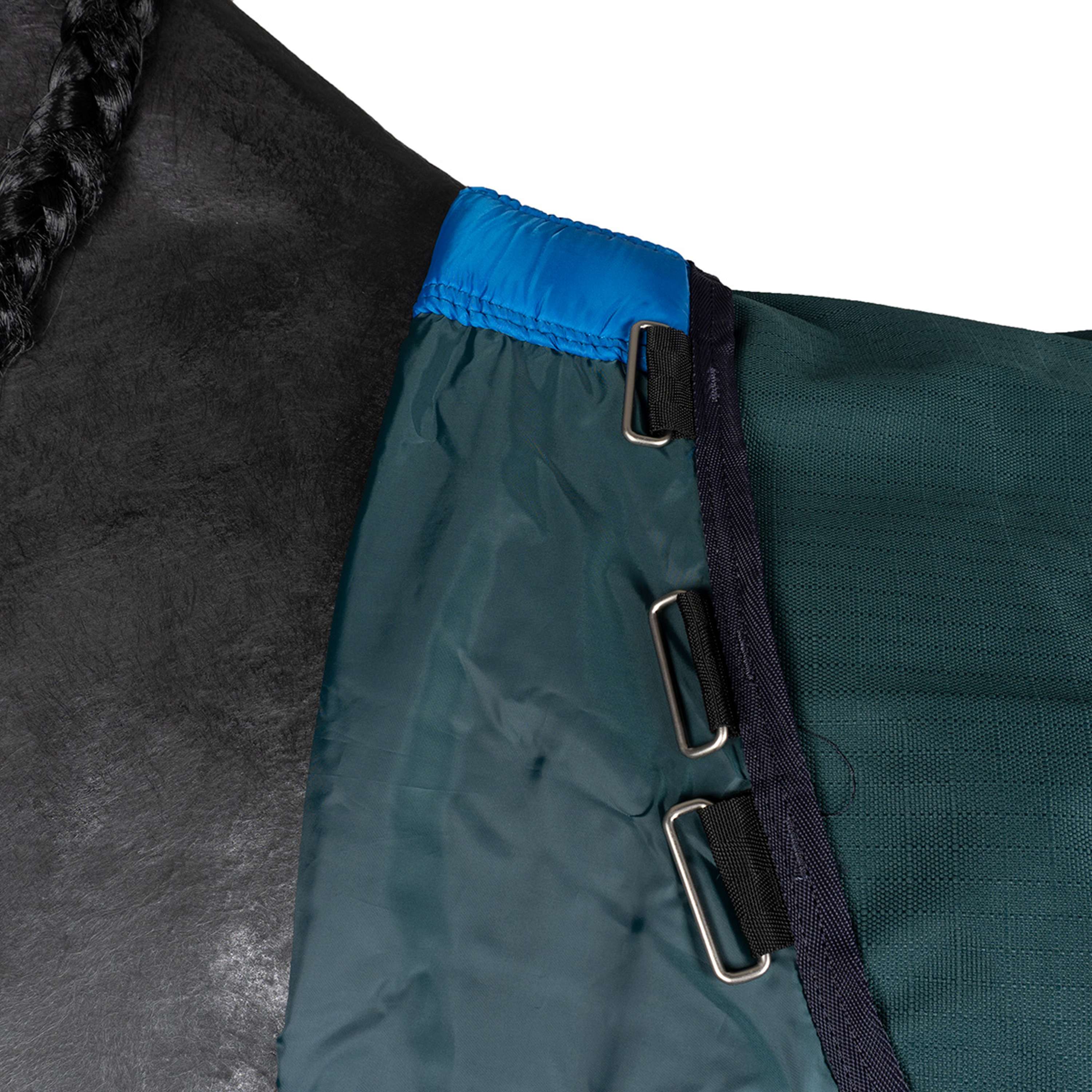 • Secure fit: Delivered via adjustable and removable leg straps, as well as a full wrap tail flap with 3-piece design, which wraps around the horse's quarters for ultimate weather protection